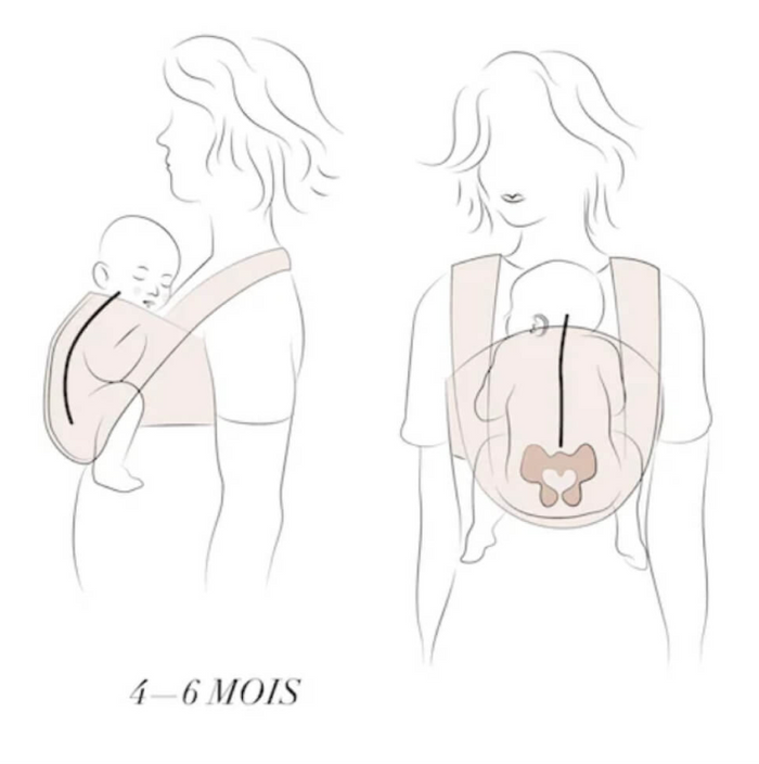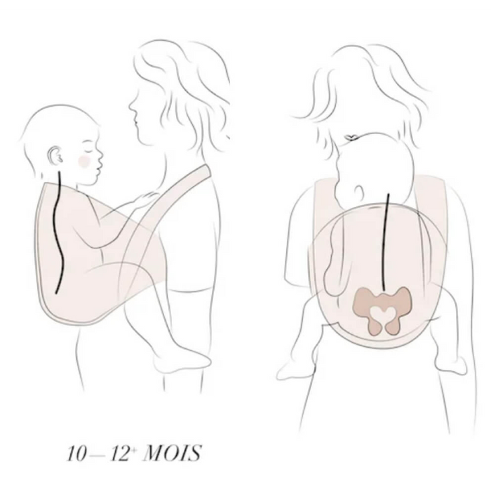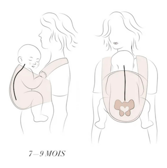 La position sur la hanche est un portage d'appoint pour les bébés à partir de 7 kg (6 mois minimum).