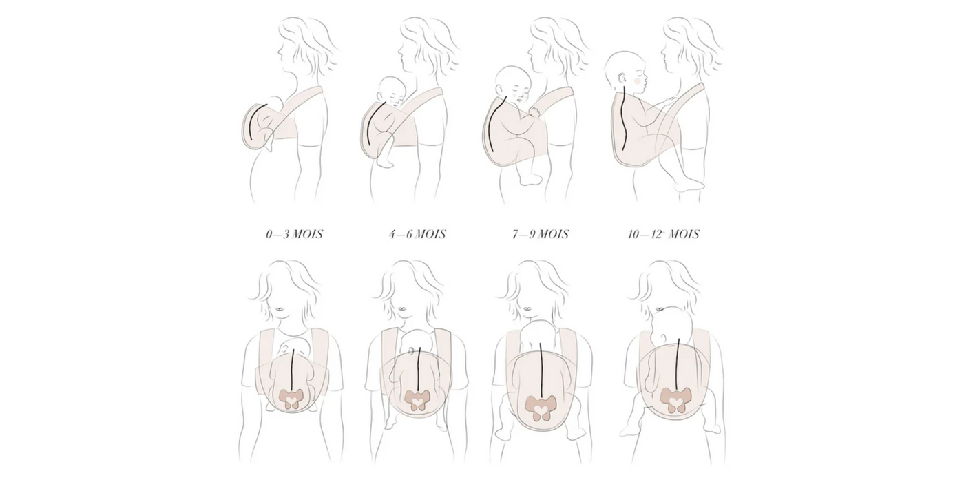 Le portage doit impérativement respecter la position physiologique de votre bébé, dite la position en « M ».