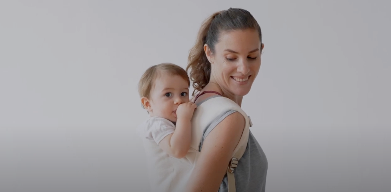 Face au porteur - Cette position peut se pratiquer à partir de 2-3 mois (selon l'écartement naturel des hanches du bébé).